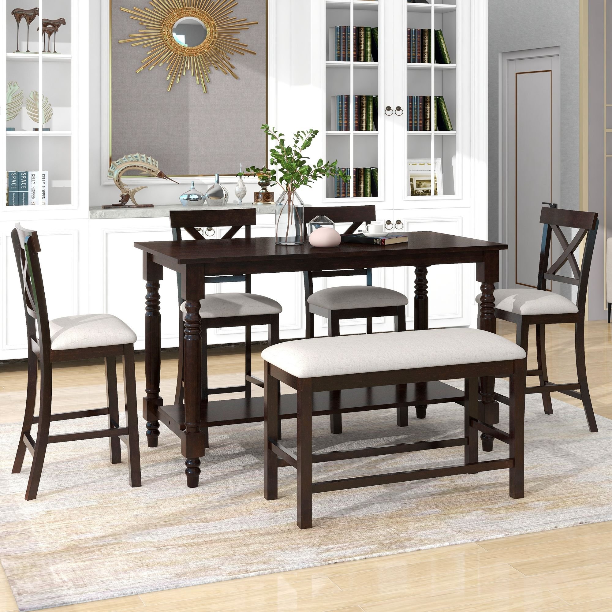 Home > 6-Piece Counter Height Dining Table Set Table with Shelf 4 Chairs and Bench for Dining Room