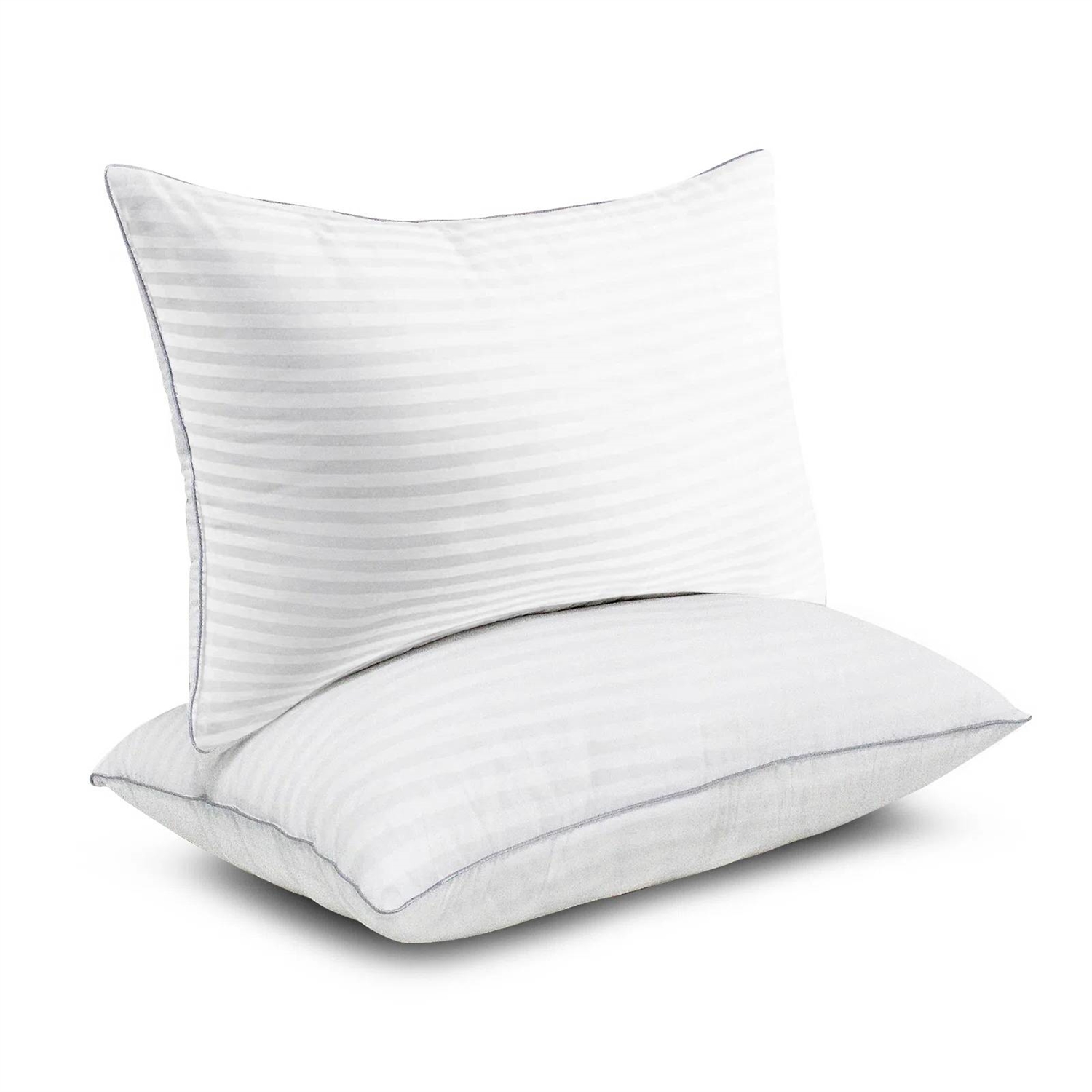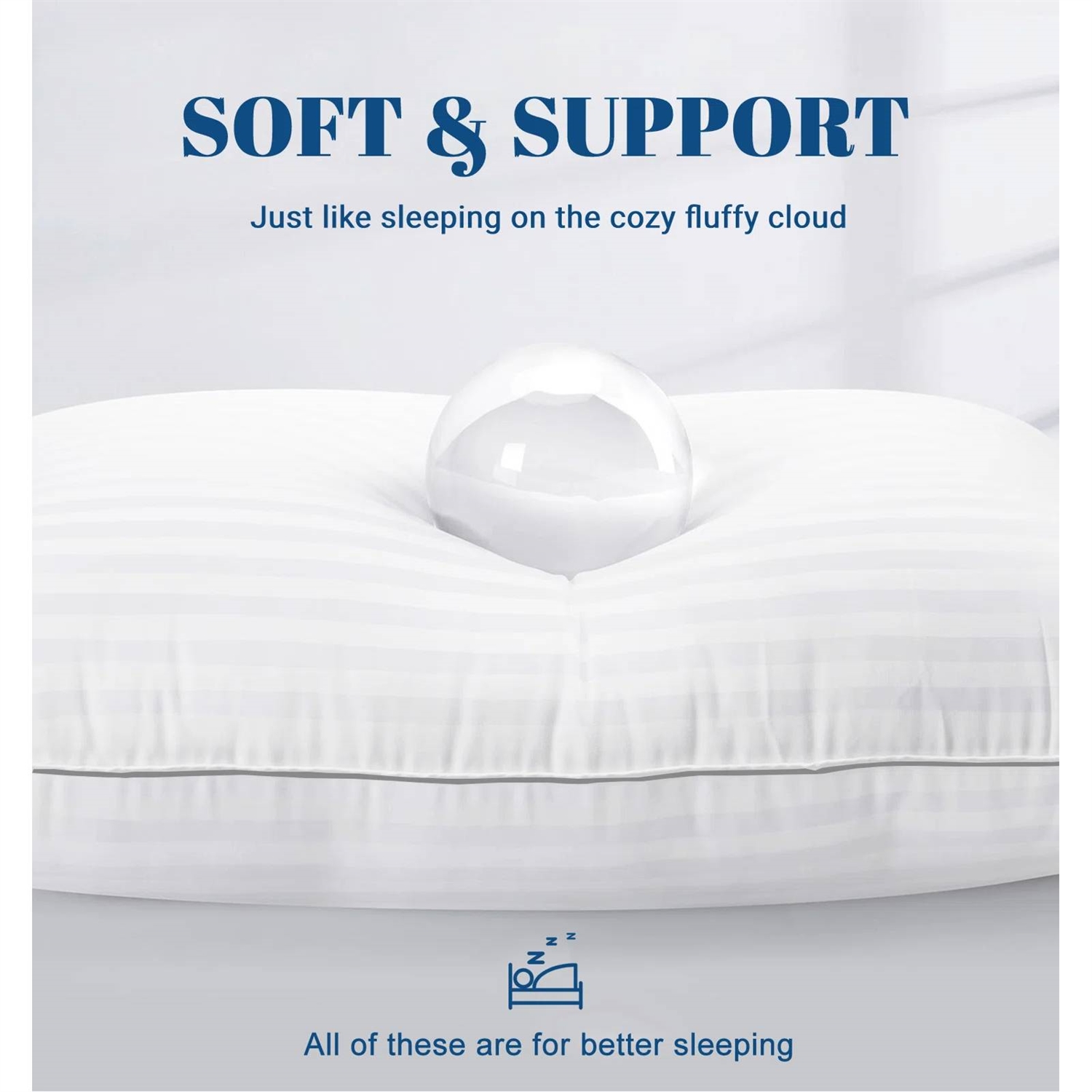This Set of 2 Machine Washable Down Alternative Bed Pillow with Cotton Cover - Queen would be a great addition to your home. Bed Pillows for Sleeping 2 Pack, Hotel Collection Super Soft Down Alternative Microfiber Pillows, for Side and Back Sleepers. Soft & Breathable Cotton Cover Our pillowcase is made of high-quality cotton that is soft and breathable, providing a cozy and comfortable sleeping experience. The cotton cover also helps to regulate body temperature, keeping you cool and comfortable throughout the night. Hypoallergenic Material The down alternative fill is a great option for those who are sensitive to traditional down feathers, and is ideal for people with sensitive skin. OEKO Standard 100 Certified Our pillow is tested under OEKO Tex Standard 100 for harmful chemicals and allergens. The pillow has the legal standard certification that can be officially sold in the United States. You can rest assured they are safe for long-term use. User's guide Machine washable and dryable. The sleeping pillows are individually sealed and packaged. Please leave the pillow for a few hours to get full looseness before using it. It is recommended to dry it under the sun for 1~2 hours regularly for healthier use.