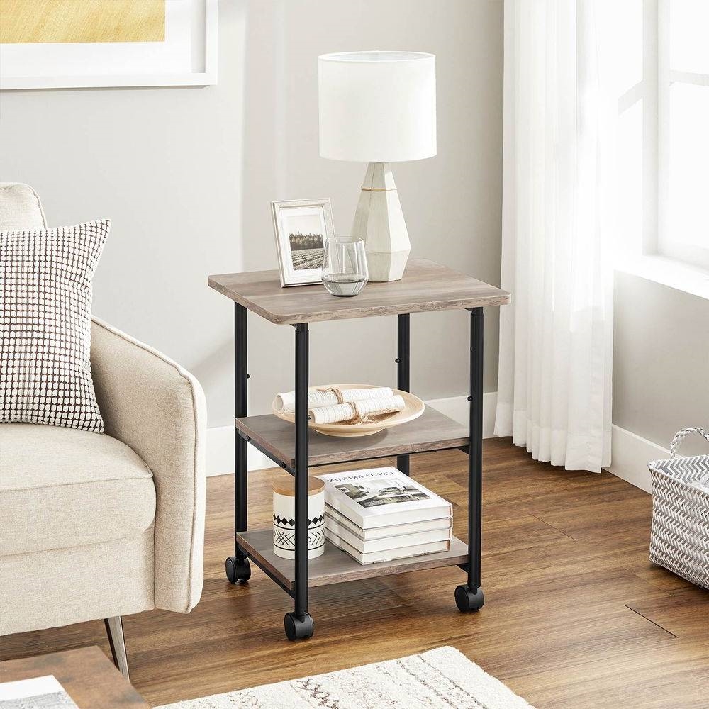 Modern Industrial Black Metal Grey Wood Printer Stand Shelf Cart