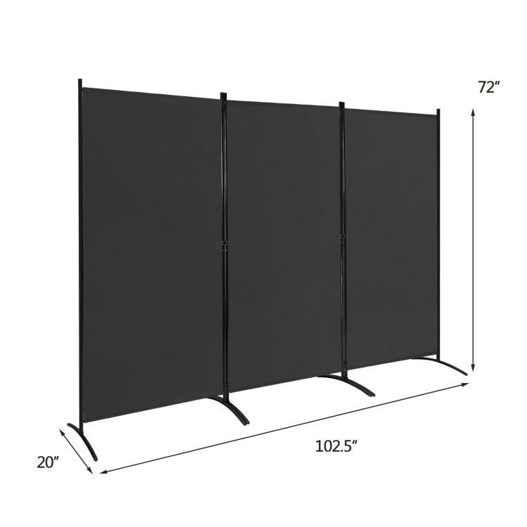 This 6-Ft Black 3-Panel Room Divider Screen with Steel Base and Heavy Duty Hinges would be a great addition to your home. Perfect Space Separation: The height of this divider is 6ft, which is high enough for you to create an enclosed personal space. But unlike ordinary walls which are completely enclosed, there is still space at the top of the screen for air circulation. This room divider can make you more relaxed when providing privacy at the same time. Well Selected Material: We especially selected premium polyester fabric as the material to manufacture this room divider. The whole frame is sturdy and durable enough to be used for a long time. Sturdy and Curved foot tubes increase the friction of the ground, making the screen more stable and not easy to dump. Multifunctional Usage: The screen is suitable for all kinds of scenes. It can be placed next to a window and used to block out sunlight when the sunlight is dazzling or used as a door in a small space. It is an easy way to create temporary privacy for overnight guests. Or you can use this screen to separate a room for eating and socializing. Flexible and Foldable Design: Coming with double hinges, this room divider can be quickly turned in either direction. When you do not need it, you can fold it up and put it in your storage room or other places. Because of the lightweight design, you can move it to different places according to your different needs. Classic Style and Easy Assembly: This privacy screen which is made of premium fabric is stylish and concise, which can match well with other furniture and will be a great addition to your home. Featuring simple and easy instructions, this room divider can be assembled by only one person in a short time.