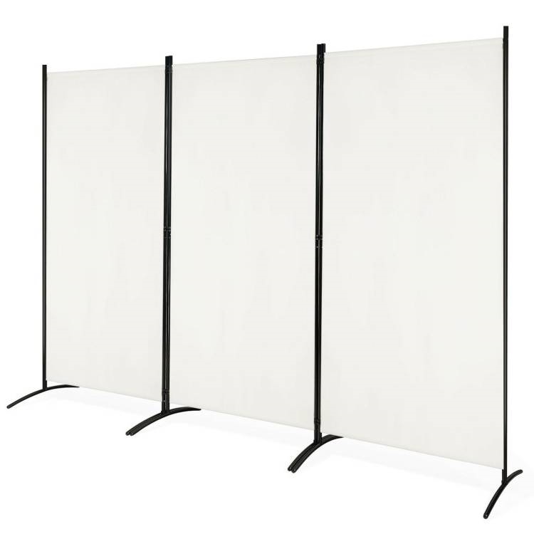• 6-Ft White 3-Panel Room Divider Screen with Steel Base and Heavy Duty Hinges