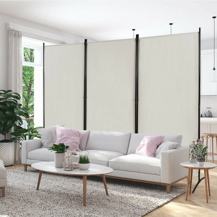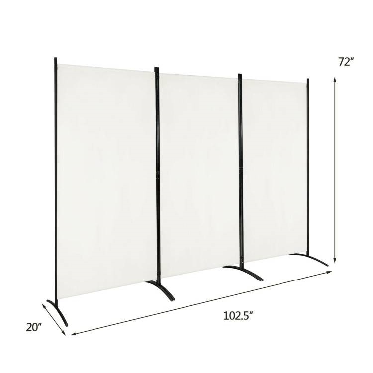 This 6-Ft White 3-Panel Room Divider Screen with Steel Base and Heavy Duty Hinges would be a great addition to your home. Perfect Space Separation: The height of this divider is 6ft, which is high enough for you to create an enclosed personal space. But unlike ordinary walls which are completely enclosed, there is still space at the top of the screen for air circulation. This room divider can make you more relaxed when providing privacy at the same time. Well Selected Material: We especially selected premium polyester fabric as the material to manufacture this room divider. The whole frame is sturdy and durable enough to be used for a long time. Sturdy and Curved foot tubes increase the friction of the ground, making the screen more stable and not easy to dump. Multifunctional Usage: The screen is suitable for all kinds of scenes. It can be placed next to a window and used to block out sunlight when the sunlight is dazzling or used as a door in a small space. It is an easy way to create temporary privacy for overnight guests. Or you can use this screen to separate a room for eating and socializing. Flexible and Foldable Design: Coming with double hinges, this room divider can be quickly turned in either direction. When you do not need it, you can fold it up and put it in your storage room or other places. Because of the lightweight design, you can move it to different places according to your different needs. Classic Style and Easy Assembly: This privacy screen which is made of premium fabric is stylish and concise, which can match well with other furniture and will be a great addition to your home. Featuring simple and easy instructions, this room divider can be assembled by only one person in a short time.