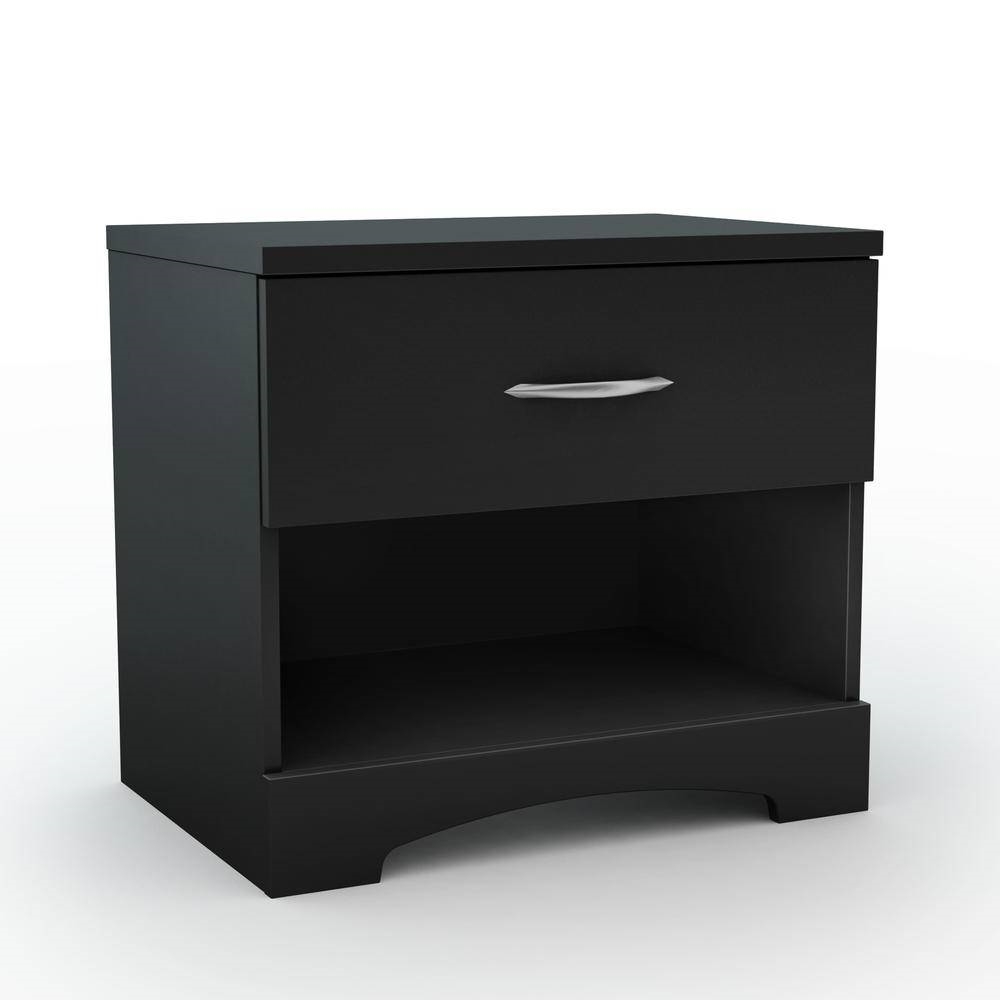 Modern 1 Drawer Nightstand End Side Table Storage in Black