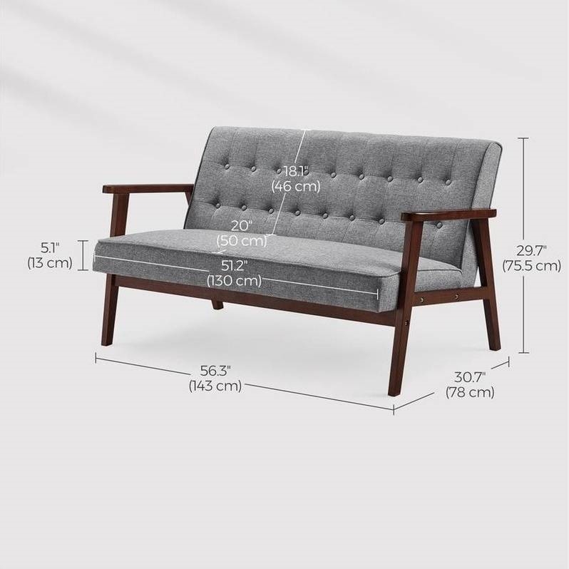 Mid-Century Modern Wood Frame Loveseat Sofa Couch with Grey Seat/Back Cushion Mid-Century Modern Wood Frame Loveseat Sofa Couch with Grey Seat/Back Cushion Mid-Century Modern Wood Frame Loveseat Sofa Couch with Grey Seat/Back Cushion