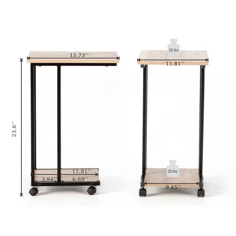 • Modern Industrial Style Metal Wood TV Tray Bedside Table with Removable Casters
