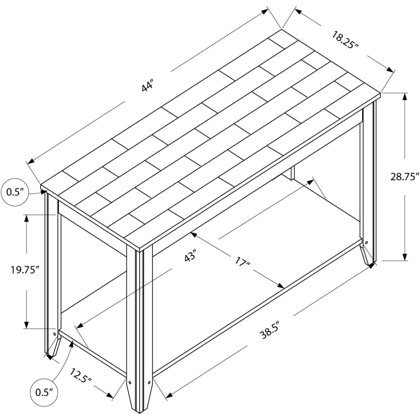 With a modern marble-look top and sleek dark espresso tapered legs, this Sofa Table in Dark Brown Wood Finish with Faux Marble Top appeals to any living space. The open bottom shelf can be used for added storage or to showcase decorative pieces. Perfect for the living room, the entryway or anywhere in your home to display your favourite accents in style.