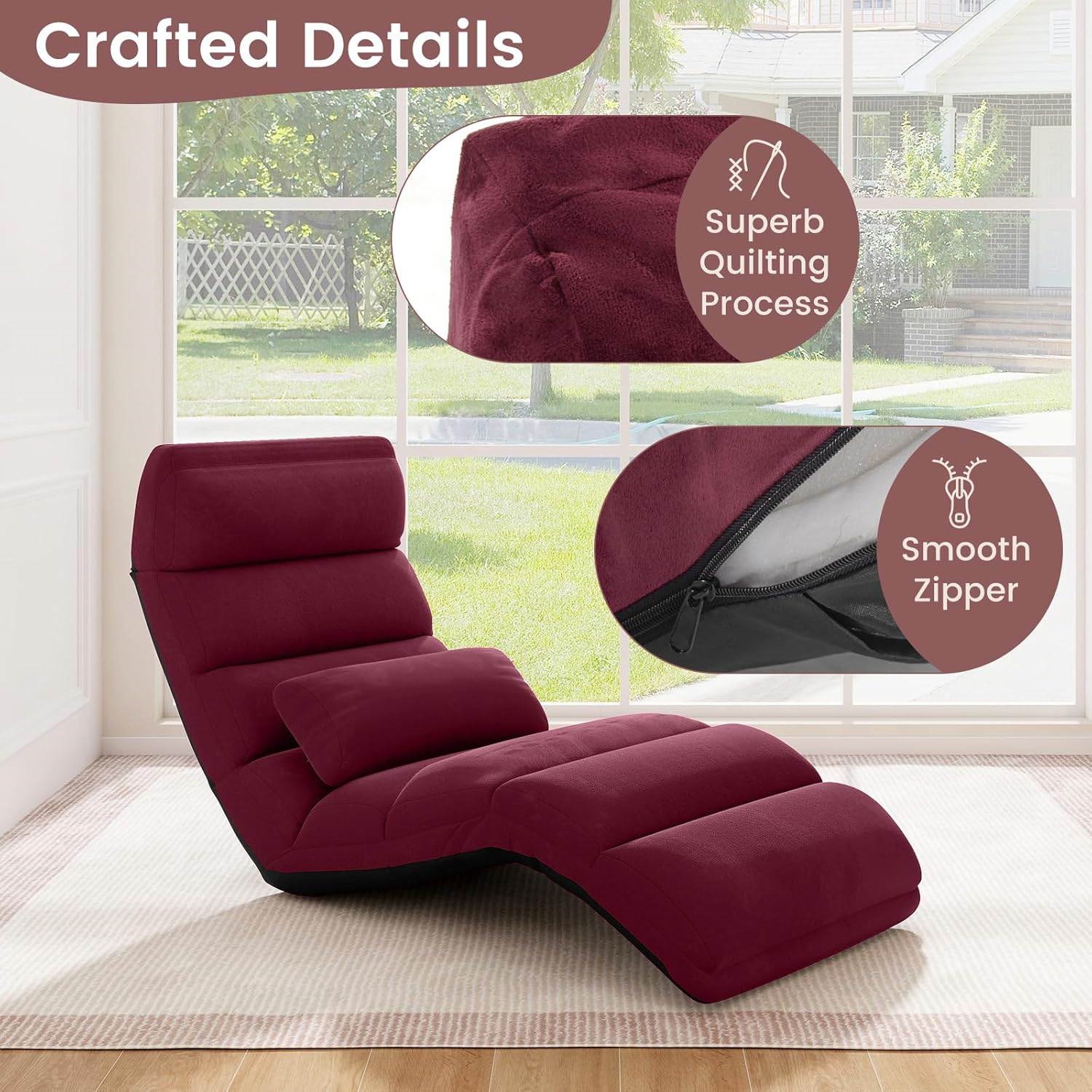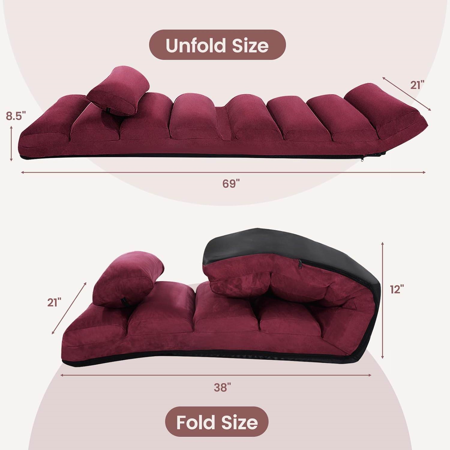 Burgundy Red Foldable Multi-Position Sofa Bed Lounger Couch with Pillow