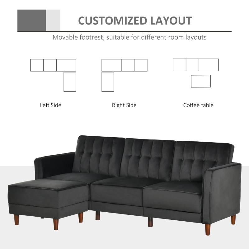 Everyone loves home furniture that does double duty, especially those living in compact home spaces. This Modern Mid-Century Reversible L-Shaped Sectional Sleeper Sofa in Black Velvet ensures you can have the lounge area you deserve and the second bedroom for an overnight guest. This sleeper couch with chaise lounge features velvet-touch fabric for easy maintenance and thick sponge padding upholstery for exceptional sitting comfort.