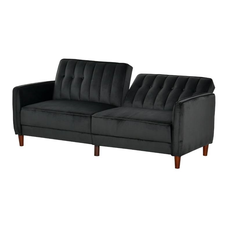 Cuddle up in soft comfort with this Mid-Century Modern Futon Sleeper Sofa Bed in Black Velvet Upholstery. This convertible sofa can seat 3 people as a couch or pushed back as a futon to watch TV, read, play video games or sleep. Customize your comfort with 3 reclining angles that can be operated separately with a split back design. The spring system and thick padded plush velvet-touch fabric give you the ultimate relaxation you need after a long day. Sink into something comfortable with Mid-Century Modern Futon Sleeper Sofa Bed in Black Velvet Upholstery.
