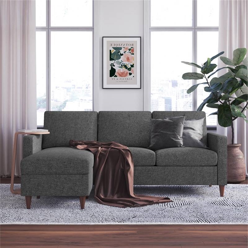 Home > Mid-Century Modern Left or Right Facing Sectional Sofa in Dark Grey Linen