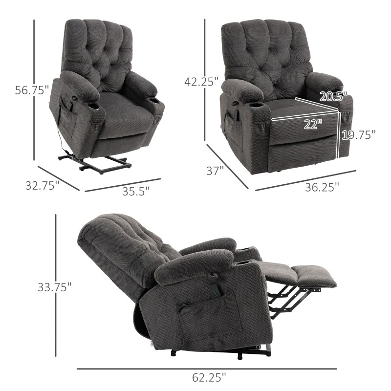Dark Grey Upholstered Power Lift Chair Recliner with USB Ports, Cup Holders, Side Pockets Dark Grey Upholstered Power Lift Chair Recliner with USB Ports, Cup Holders, Side Pockets Dark Grey Upholstered Power Lift Chair Recliner with USB Ports, Cup Holders, Side Pockets Dark Grey Upholstered Power Lift Chair Recliner with USB Ports, Cup Holders, Side Pockets