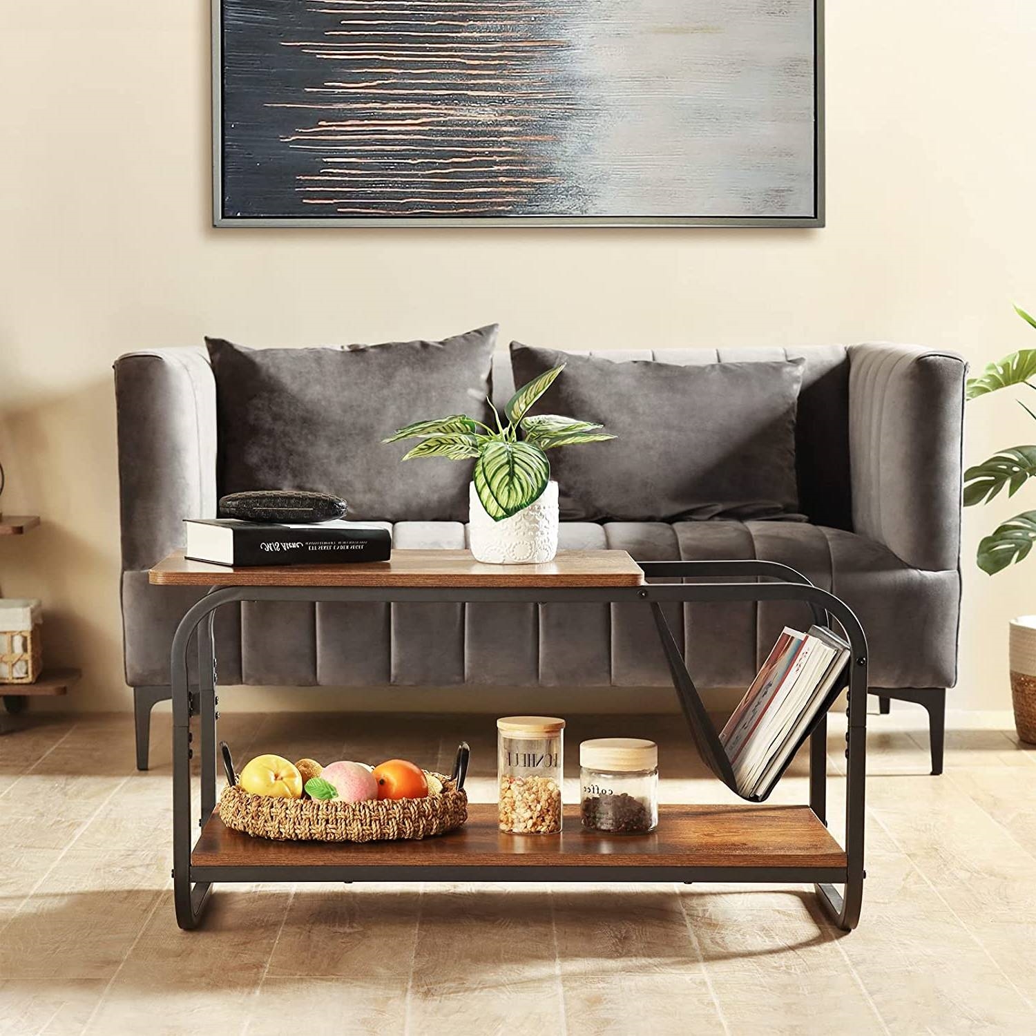 Modern 2-Tier Coffee Table with Magazine Book Holder Sling in Brown Wood Finish Modern 2-Tier Coffee Table with Magazine Book Holder Sling in Brown Wood Finish Modern 2-Tier Coffee Table with Magazine Book Holder Sling in Brown Wood Finish Modern 2-Tier Coffee Table with Magazine Book Holder Sling in Brown Wood Finish