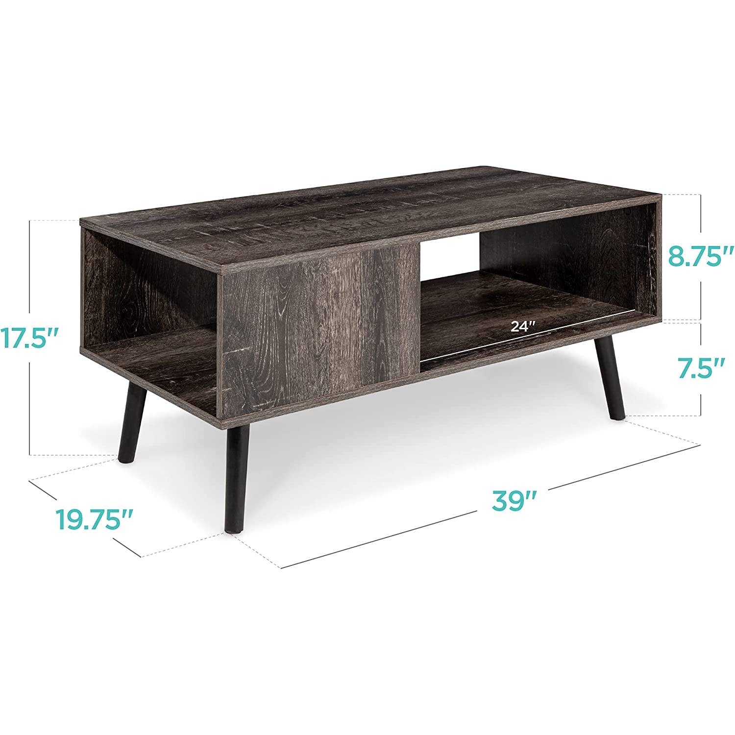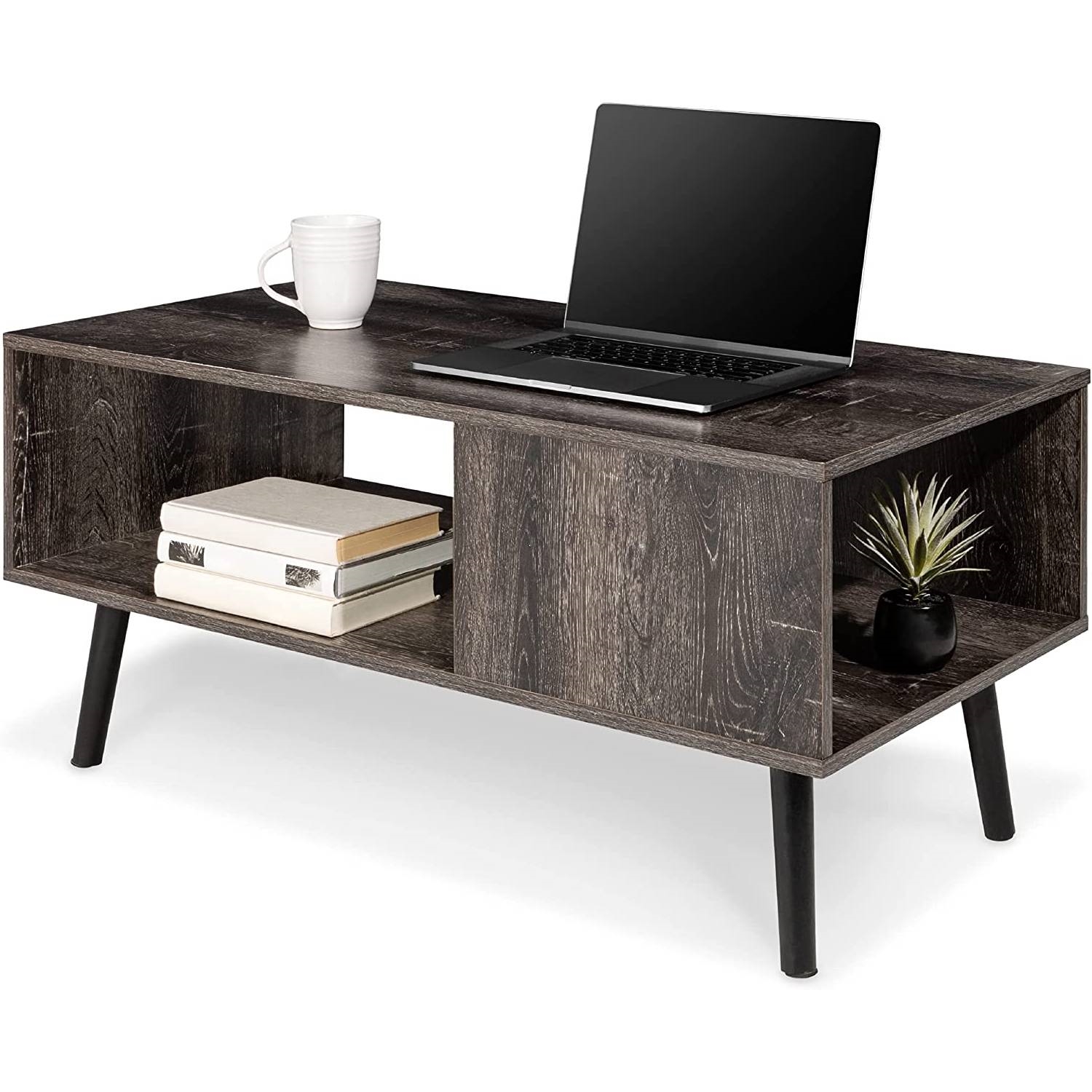 Modern Mid-Century Coffee Table Living Room Storage Shelf in Rustic Black Wood