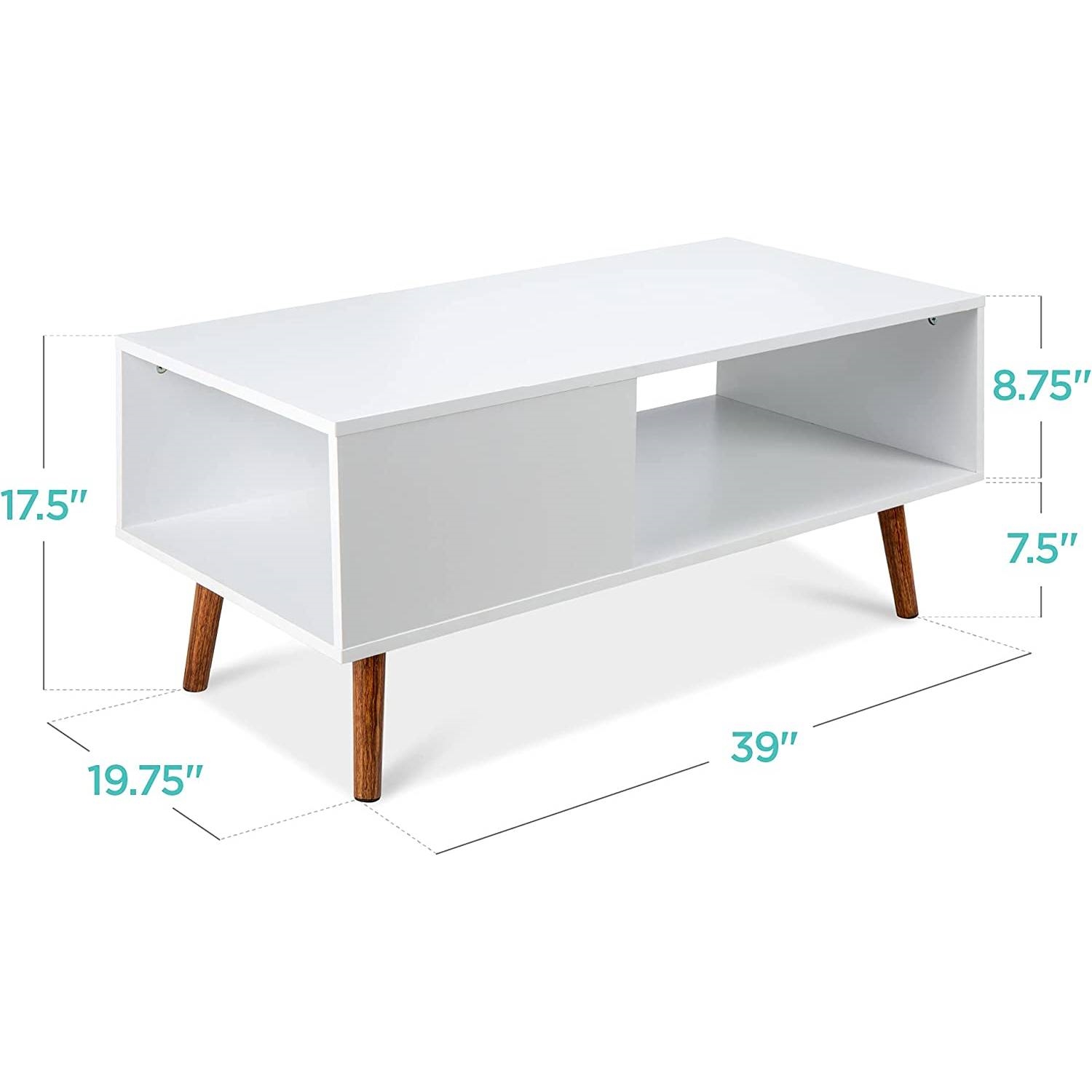 This Modern Mid-Century Style Coffee Table Living Room Storage in White Brown Wood is crafted with an open design, plus a natural wood-grain finish with subtly textured feel and mid-century modern appearance for simple yet fashionable charm in any living room.