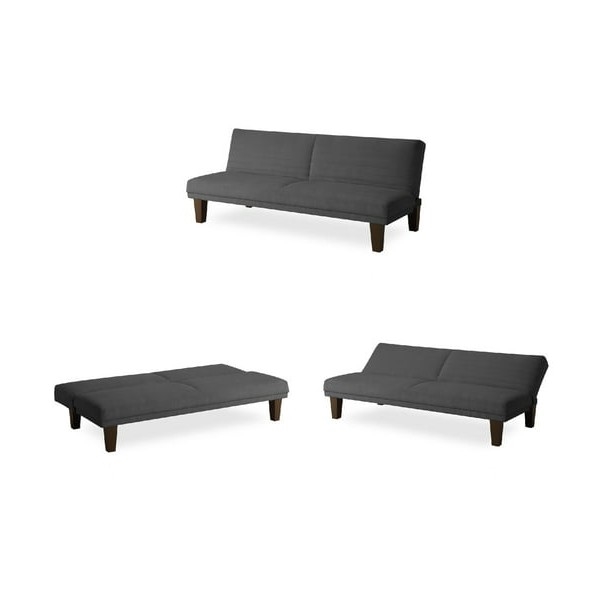 This Grey Modern Upholstered Microfiber Adjustable Futon Sleeper Sofa is the perfect piece for any home. Whether you are looking for extra seating in your living room, family room, or home office, this futon has all the features you are looking for. With its simple silhouette and neutral color options, this futon can easily and beautifully complement the existing décor of any room, no matter the style. Equipped with a simple push and pull mechanism, the backrest can quickly be converted between a sitting, lounging, and sleeping position to accommodate any situation. This futon is built with a sturdy wood frame and a soft-to-the-touch microfiber upholstery that will withstand years of unexpected overnight guests and mid-day naps.