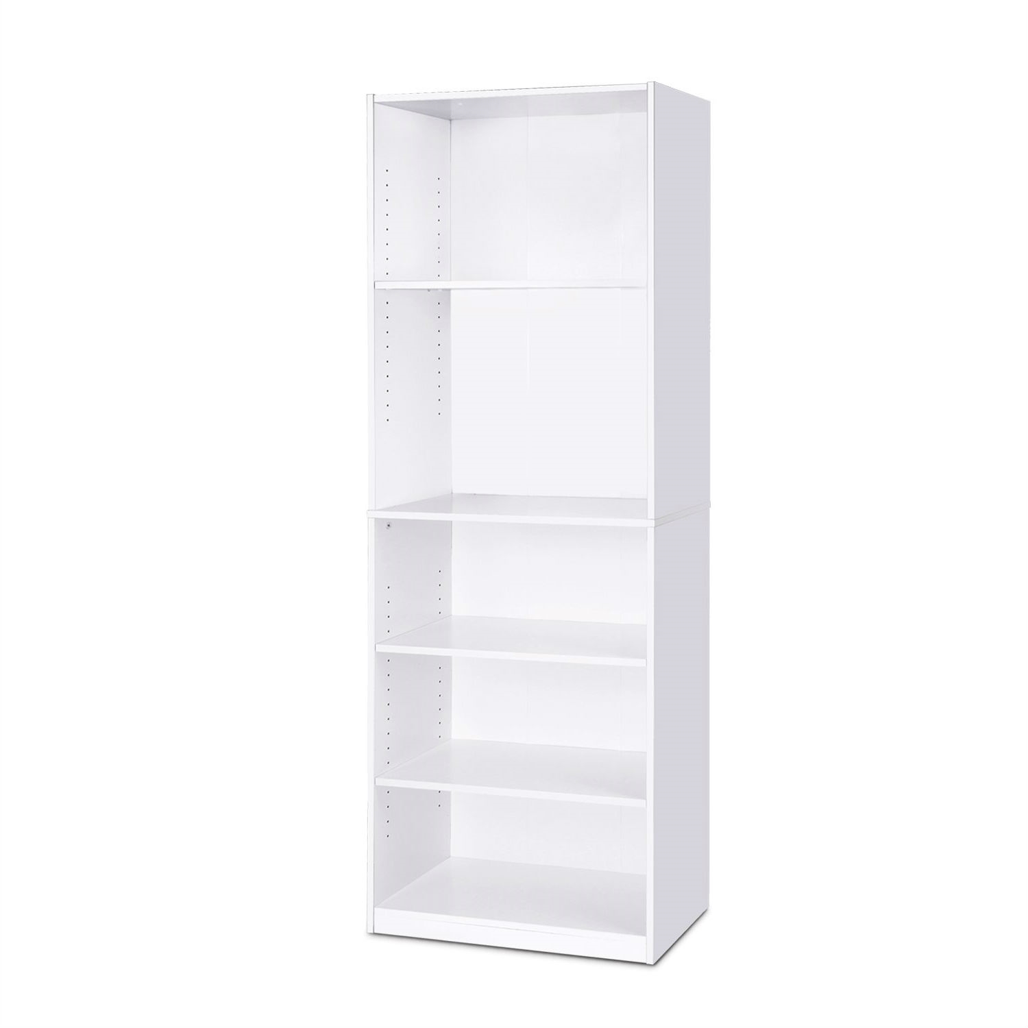 Modern 5-Shelf Bookcase in White Wood Finish Modern 5-Shelf Bookcase in White Wood Finish